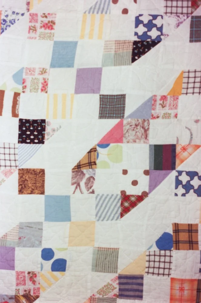 #95-192 1960sHobbyJacob's LadderCottonFlanneletteContinuous SetBack Turned FrontHome-cut Straight BindingMachine and hand sewn Aug 11 Written By Christel LeBlanc Quilt made by Elizabeth DeMoliter & Shirley Rhuland in Nova Scotia Christel LeBlanc http://forestfriend.ca/