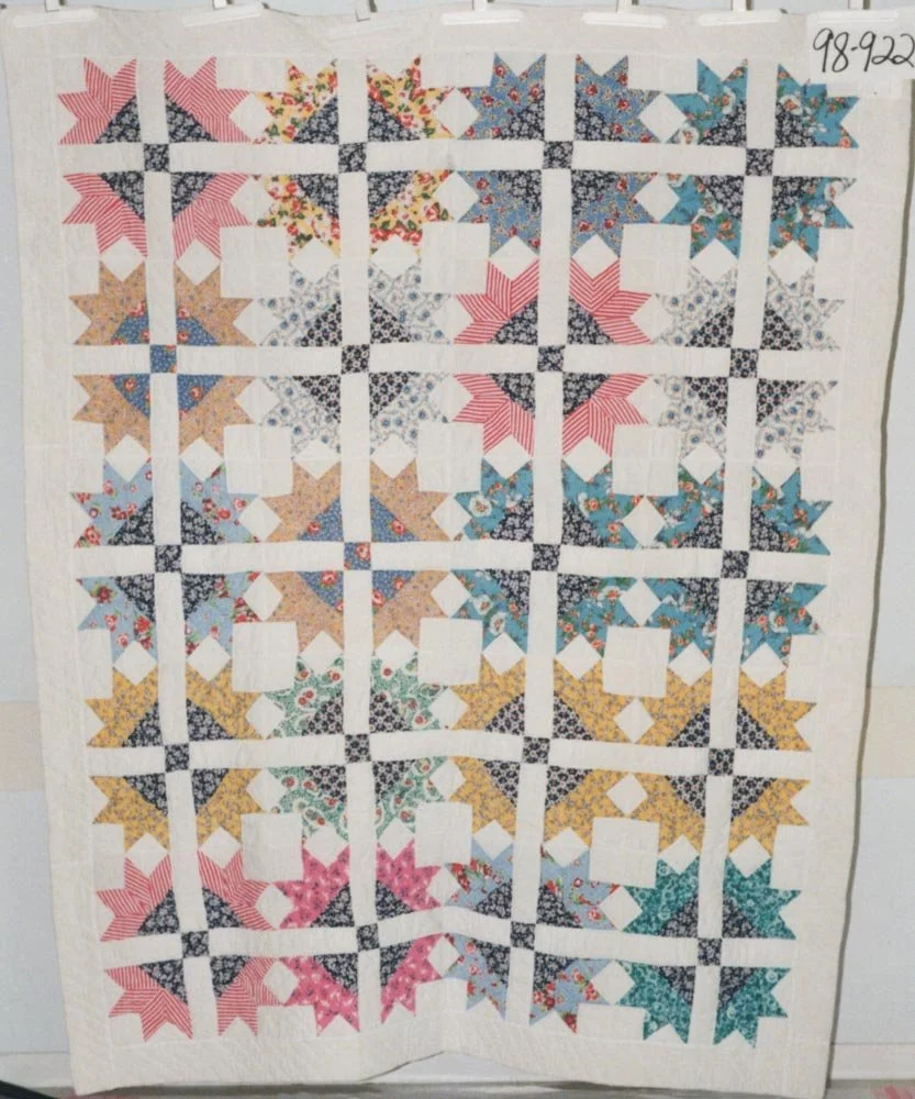 #98-922 1960sYarmouthUtilityGroup ProjectBear's paw/Cat's pawCottonFlour BagsEdge to BackMachine and hand sewnInheritance Jul 26 Written By Christel LeBlanc Quilt made by Edith S. d’Entremont & friends in Lower West Pubnico, Nova Scotia Christel LeBlanc http://forestfriend.ca/